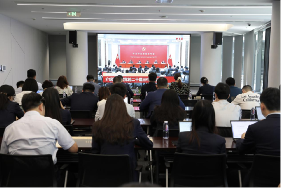 7月19日,诚通混改临时党委组织全体党员干部职工集中收看中共中央新闻发布会直播,聆听有关方面负责同志介绍党的二十届三中全会精神。