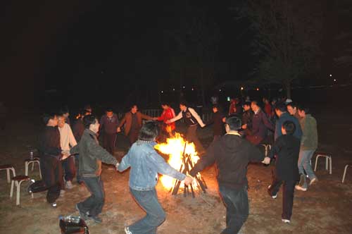 活动期间,春游队伍组织了划竹筏比赛,进行了篝火联欢,参观游览了野三坡地质公园及鱼谷洞。