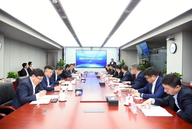 国海公司总经理邓明川作了题为《守正创新筑根基 实干担当促转型 奋力开启国海公司“二次创业”新征程》的报告。国海公司副总经理严肃主持会议,传达学习上级单位2024年工作会议精神。
