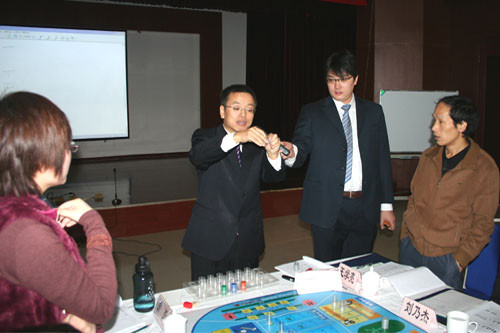 在用友助理总裁、培训教育事业部总经理、马德富讲师的引领下,学员们开始了精彩的沙盘世界之旅。现场气氛瞬间变得热烈而井然。大家紧张而又兴奋地讨论战略调整、团队组建,进行设备投资、产品研发、市场开拓、广告宣传、竞标订单、投资融资、会计核算……至第三、四经营年度时,竞争趋于白热化。市场定位不准、采购不合理、原材料和产成品大量积压、融资不及时、资金断流、产品研发不对路、产能不足、费用开支过大等在现实企业经营中遇到的问题,纷纷呈现在各张沙盘之上。面对瞬息万变的市场,面对竞争对手咄咄逼人的态势,每个团队都面临着一系列艰难的抉择,若不及时做出战略调整则难以渡过危机。现场不时有“商业间谍”四处探密,收集信息,更有谈判高手试图寻找合作避免损失,以期共赢。此时的培训现场俨然成为一个没有硝烟的商业市场,处处充满着机遇和挑战。