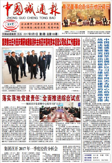 2010年8月1日,《中国诚通报》创刊百期之际,集团董事长、党委书记马正武勉励报纸围绕集团发展大局和中心工作,进一步发挥好导向作用,做集团决策精 神的“广播台”,做业务交流的“智慧库”,做员工沟通的“聊天室”,做鼓舞斗志的“加油站”,做企业文化的“传导器”,做营建品牌的“展示厅”。