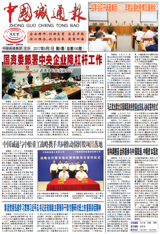 《中国诚通报》创刊于2002年11月1日,由中国诚通控股集团有限公司主办。报纸是集团广大干部职工进行业务交流、思想沟通,共塑诚通文化的平台;也是社会了解诚通的重要窗口。